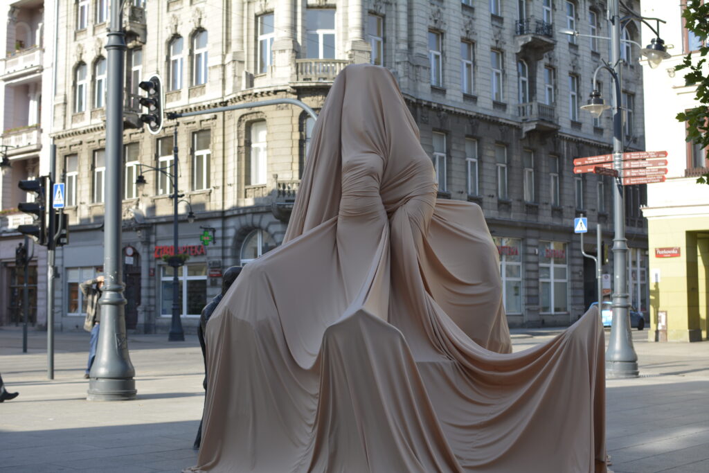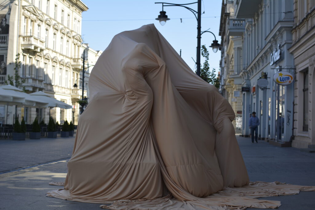Monumentalizm, ciężkość i hieratyczność istniejących rzeźb zostały zestawione z syntetyczną organicznością efemerycznych obiektów, będących wizualną wypadkową energii artystek wykonujących cielesną choreografię pod tkaniną. Działanie z jednej strony przywołuje narrację o samych rzeźbach, podejmując próbę ich „usunięcia” z ulicy. Z drugiej – owo usunięcie [ukrycie] ma za zadanie uwypuklić aspekt niewidzialności wszystkich tych, których miejsce w narracji o mieście było do tej pory na marginesie.